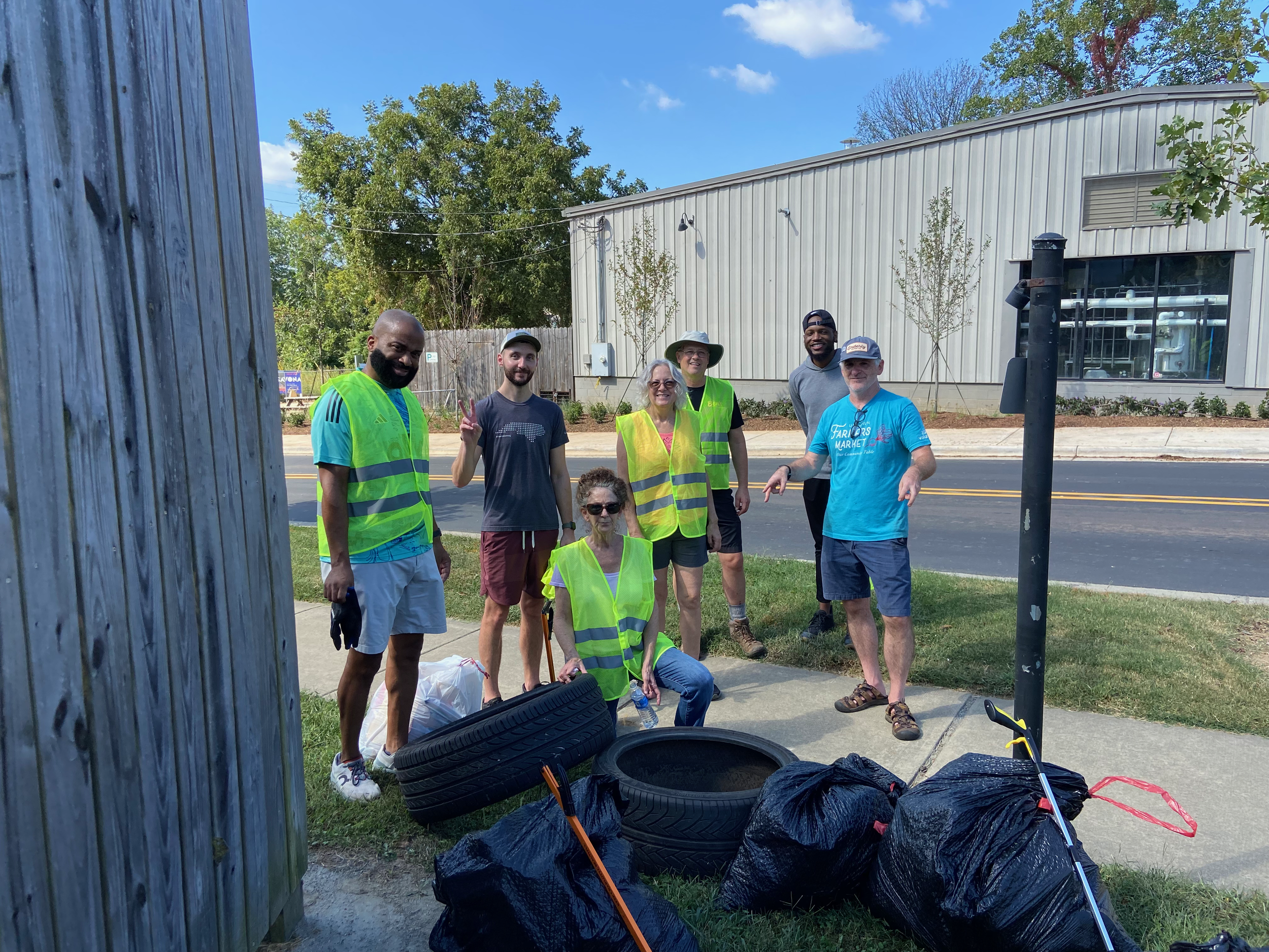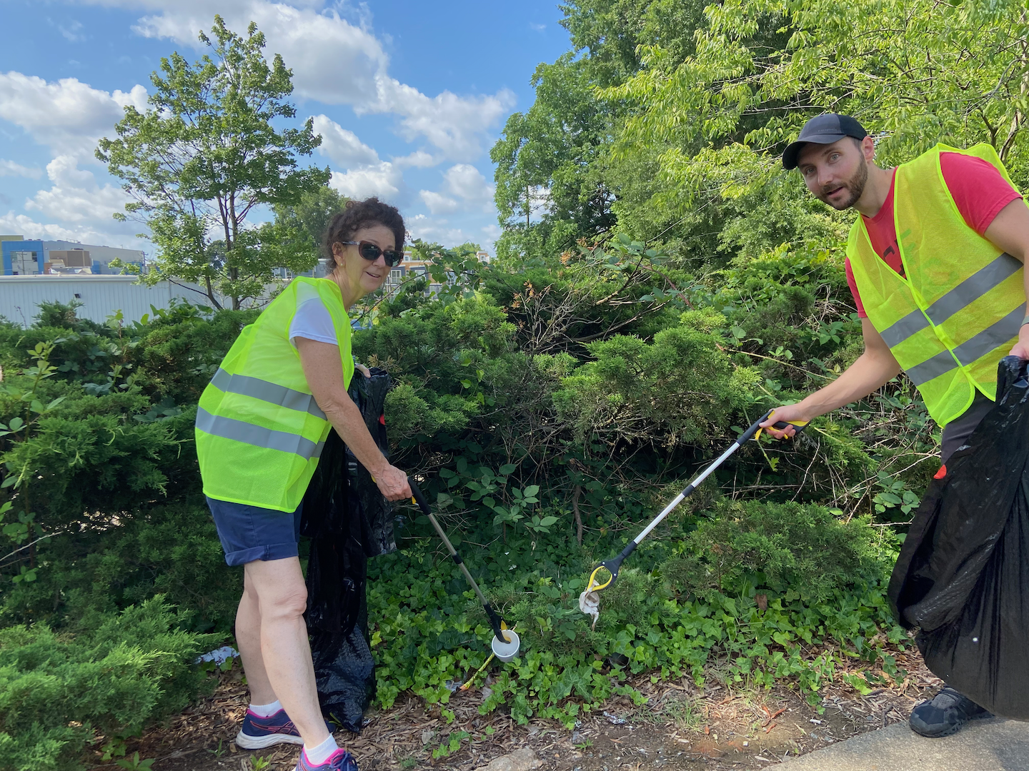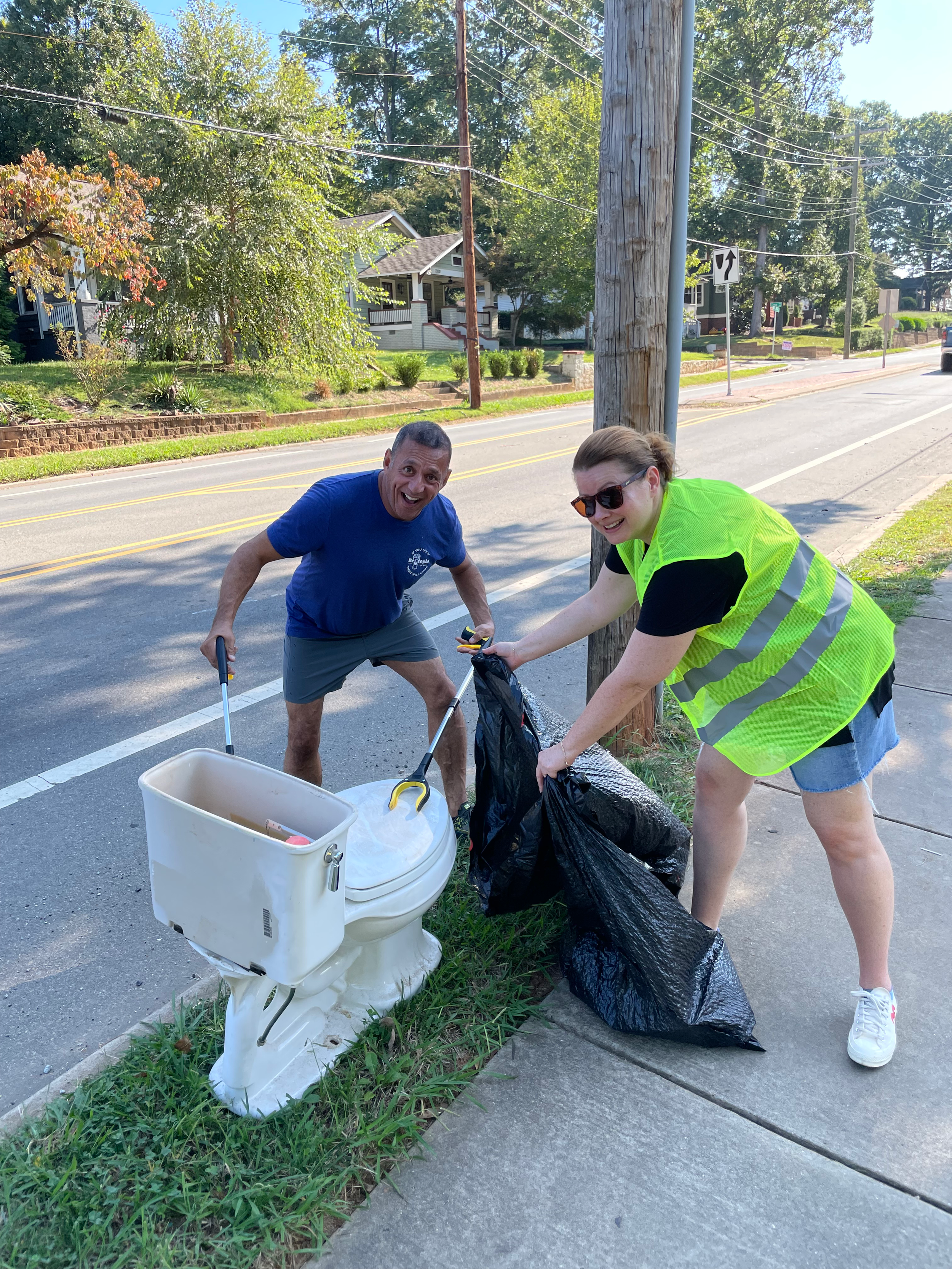 We break into small groups and walk the neighborhood picking up trash and recyclables.